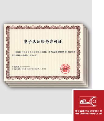 河北CA具有工業和信息化部頒發的電子認證服務許可、國家密碼管理局頒發的電子認證服務使用密碼許可、商用密碼產品銷售許可、電子政務電子認證服務許可、衛生系統電子認證服務許可、信息安全服務(安全工程)等資質;是中國CA產業聯盟副理事長單位、中國密碼學會會員單位、河北省電子認證委員會成員單位、河北省電子政務研究會副理事長單位、河北省衛生信息中心副會長單位、河北省信息安全支撐單位。